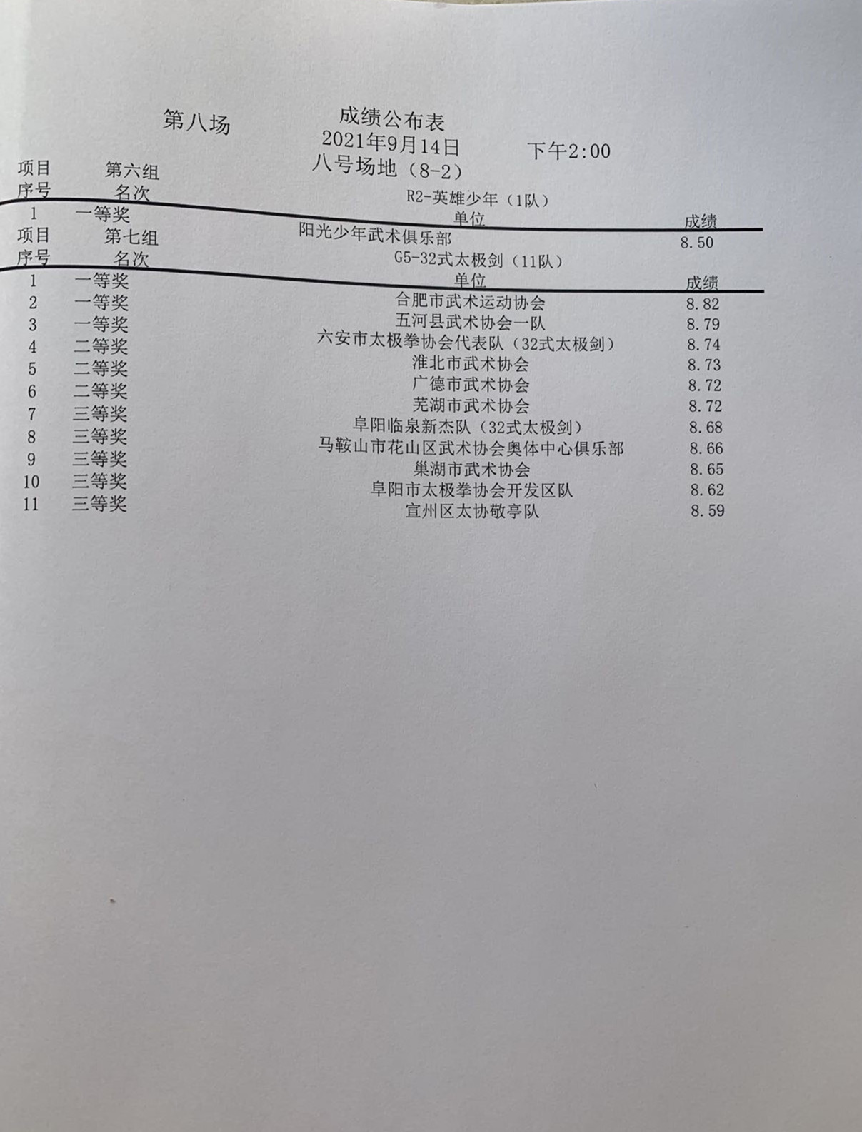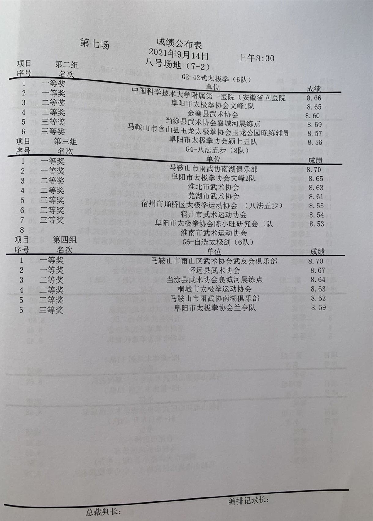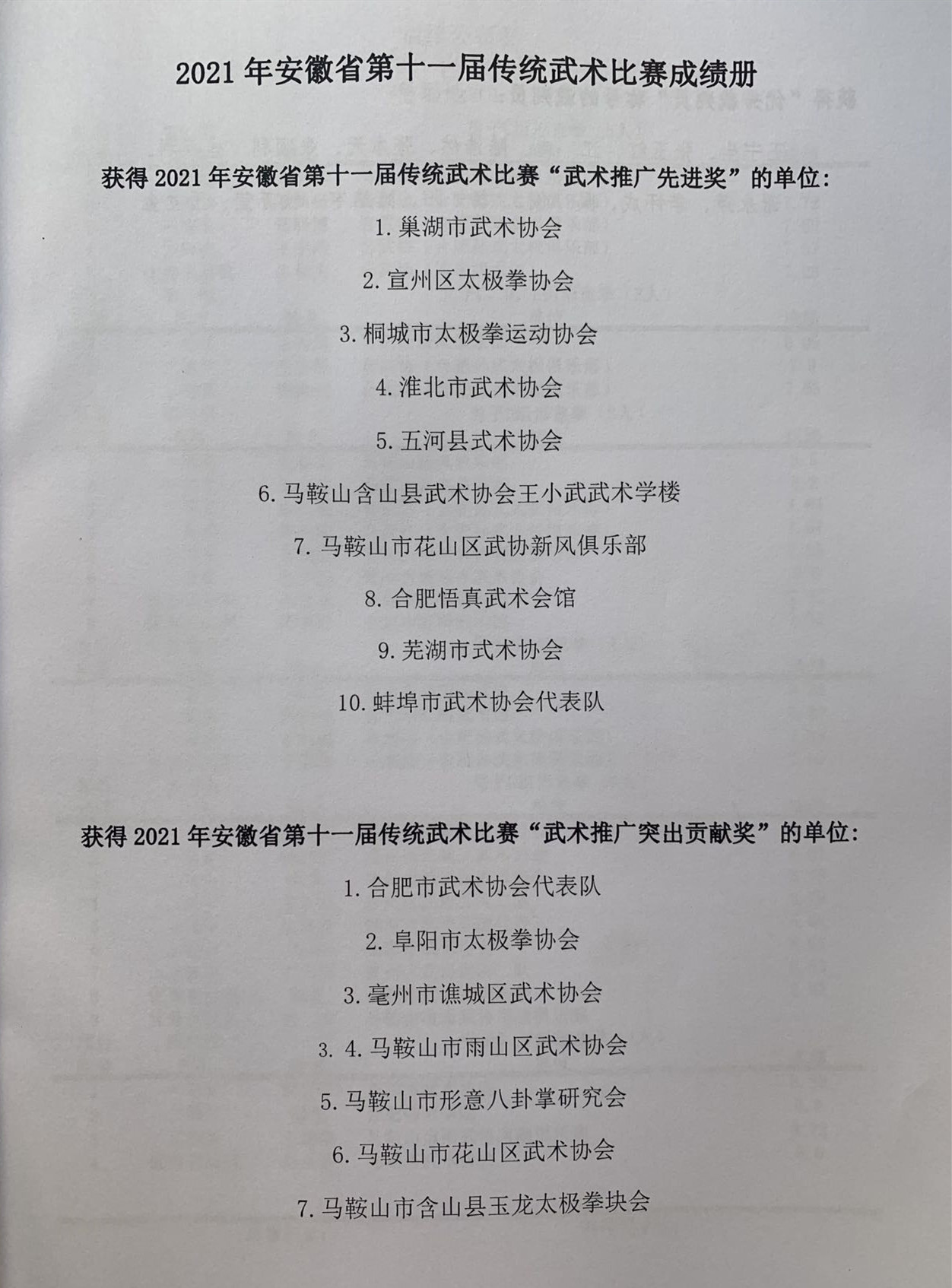 安徽省第十一届传统武术比赛成绩册(部分)