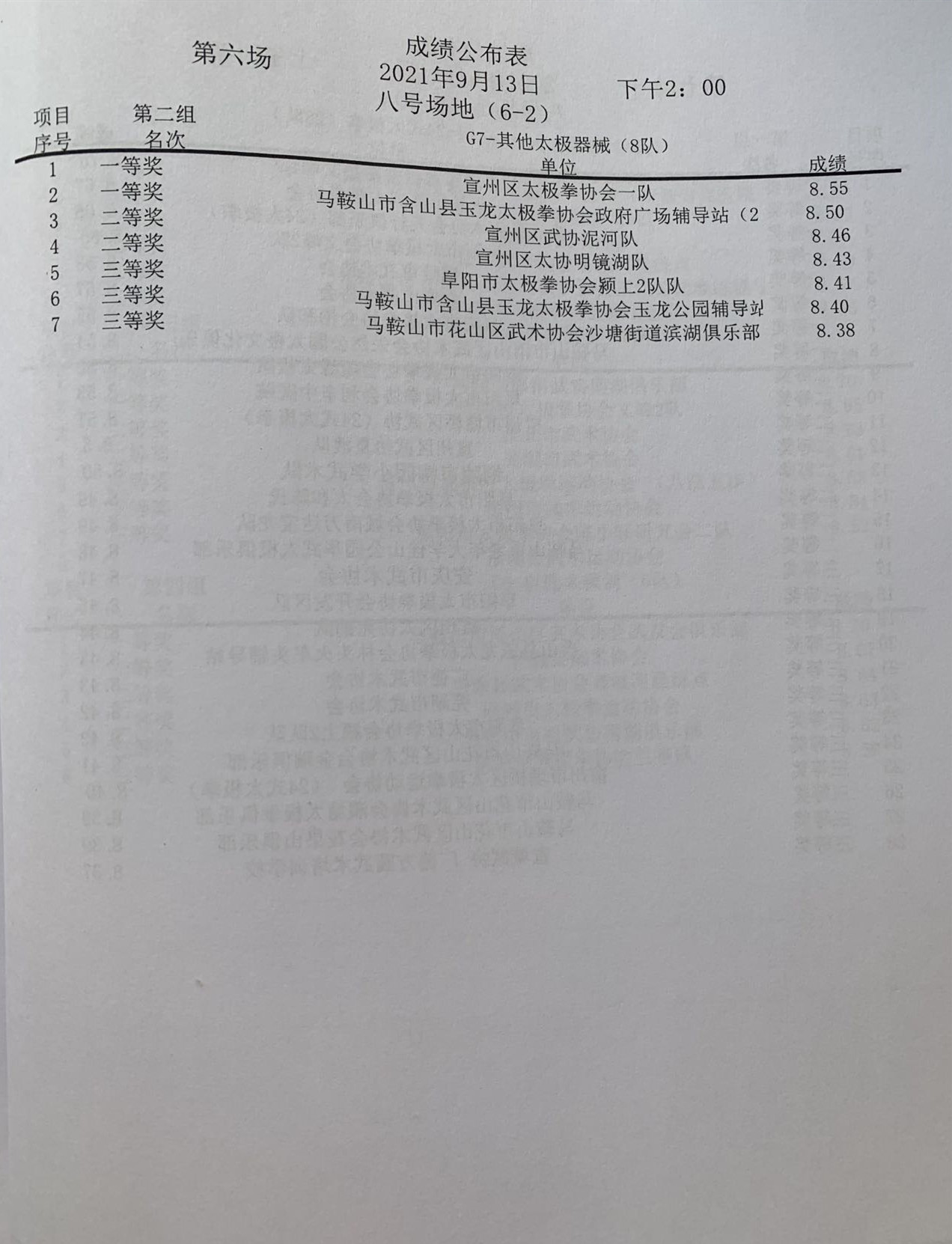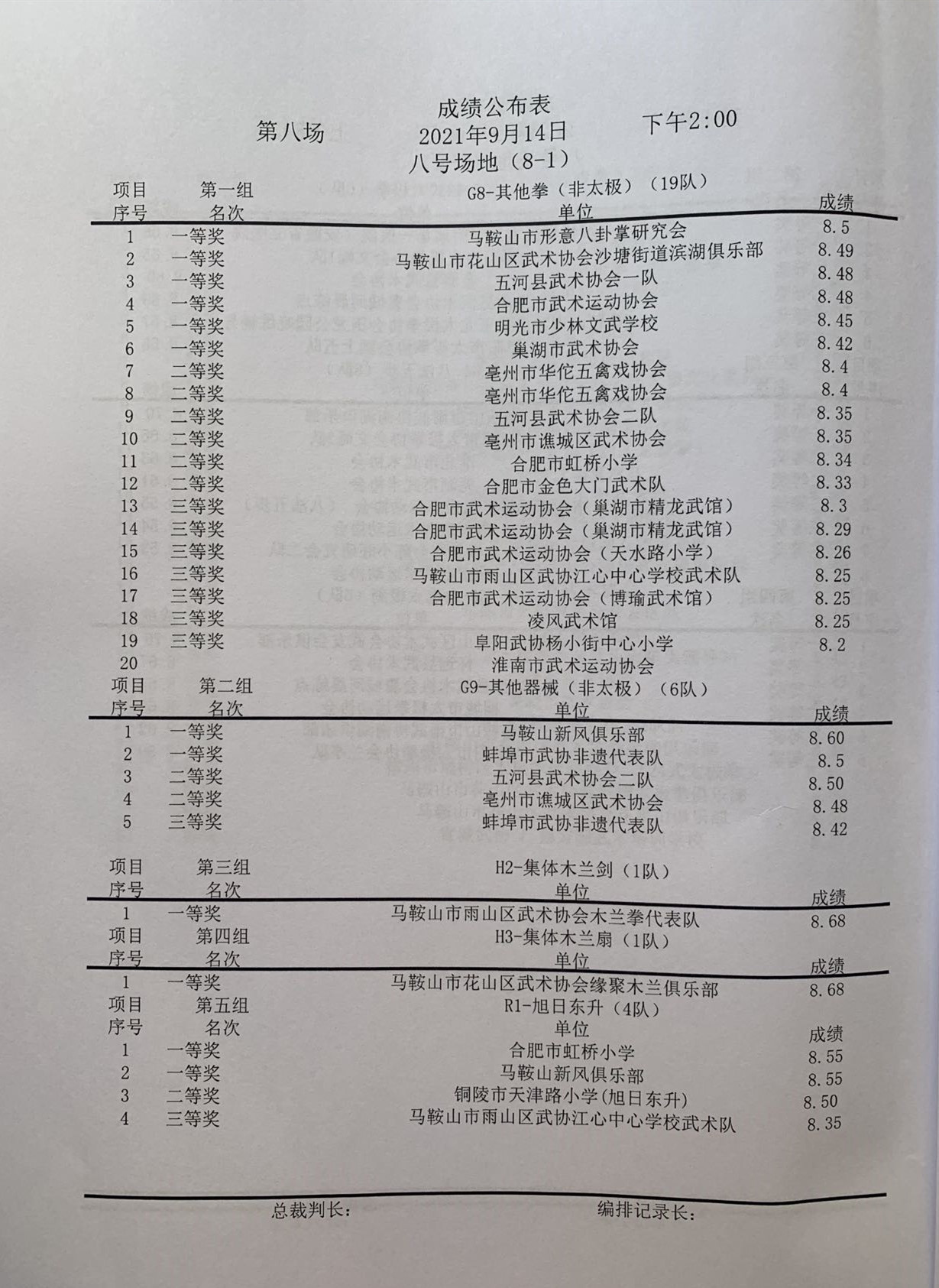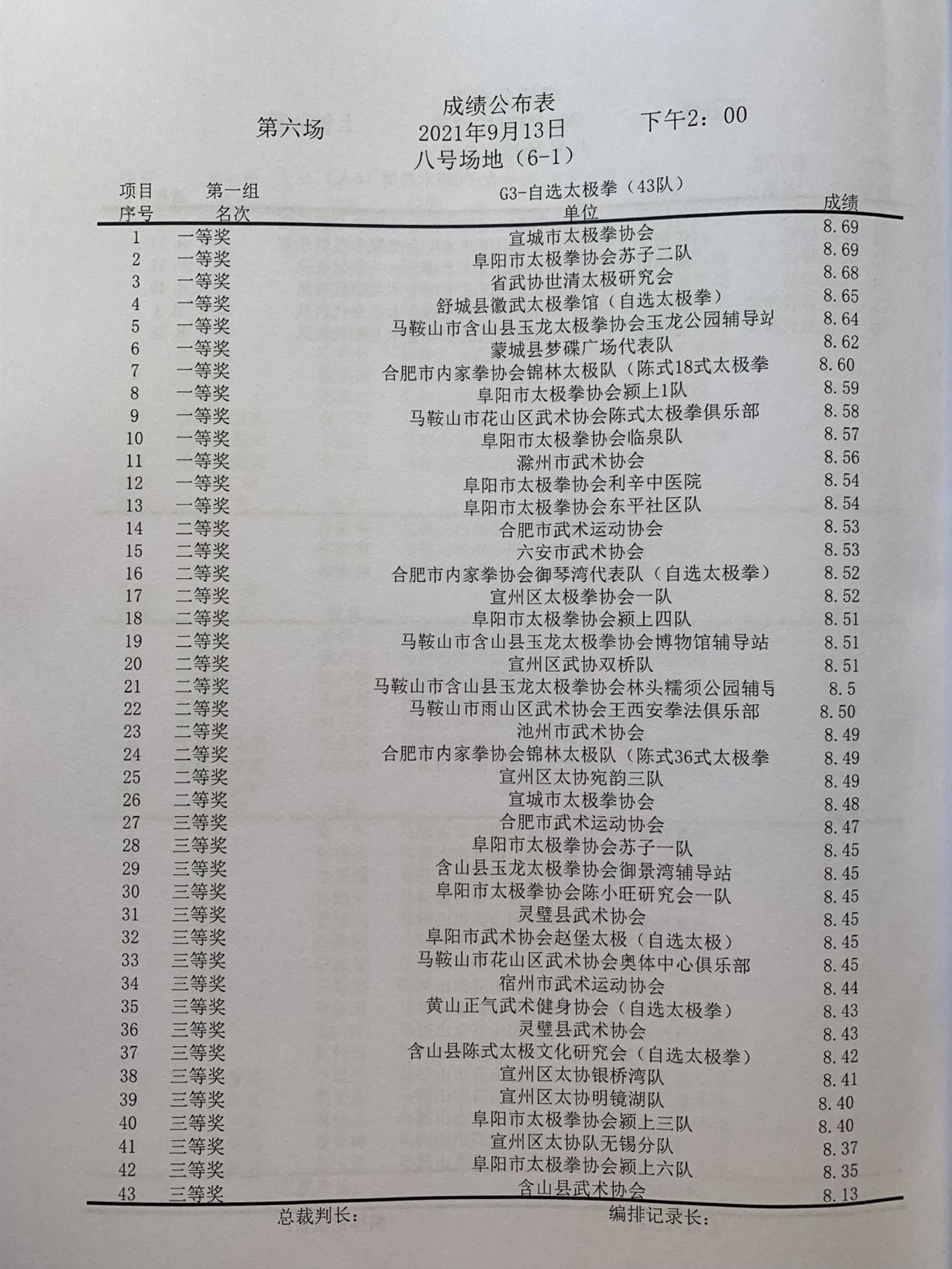 安徽省第十一届传统武术比赛成绩册(部分)