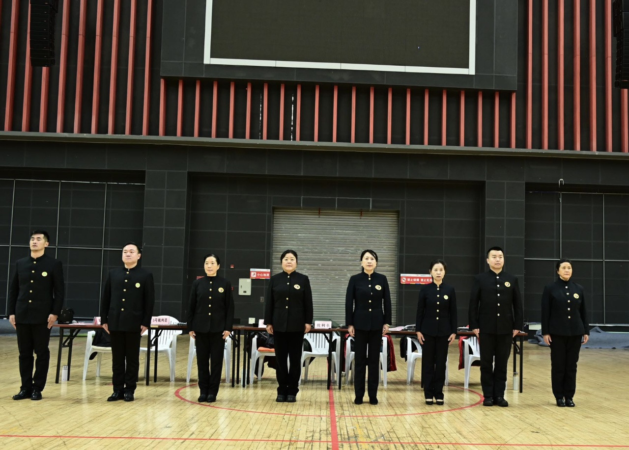 本次武术比赛竞赛委员会由马鞍山市体育局副局长赵峰、李金明,王鹏、教育局领导纵瑞岭及市武术协会会长谷和永,中国武术七段吴国刚等领导和专家组成;仲裁委员会则由吴盼、尤超、吴珊珊、张小刚、朱飞祥五位资深专家组成。总裁判长由国家武术(套路)一级裁判、中国武术七段吴国刚担任;副总裁判长分别由国家武术(套路)一级裁判、中国武术六段朱顺莉、吴俊、陶文松担任。本次比赛严格按照中国武术协会颁布的2024年版《传统武术套路竞赛规则》和《马鞍山市中小学生武术比赛补充规定》进行执裁,确保了比赛的专业性和公平、公正,有序的进行。