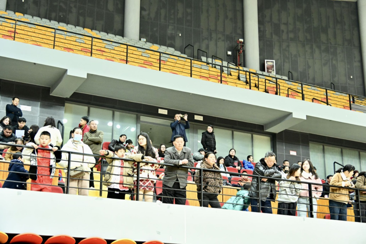 比赛现场,气氛热烈非凡,分三个场地进行。裁判员们严肃、认真、准确规范执裁;赛场上运动员们龙腾虎跃,充分展现了武术的魅力和中小学生的活力与风采,赢得了现场观众的阵阵掌声和喝彩。