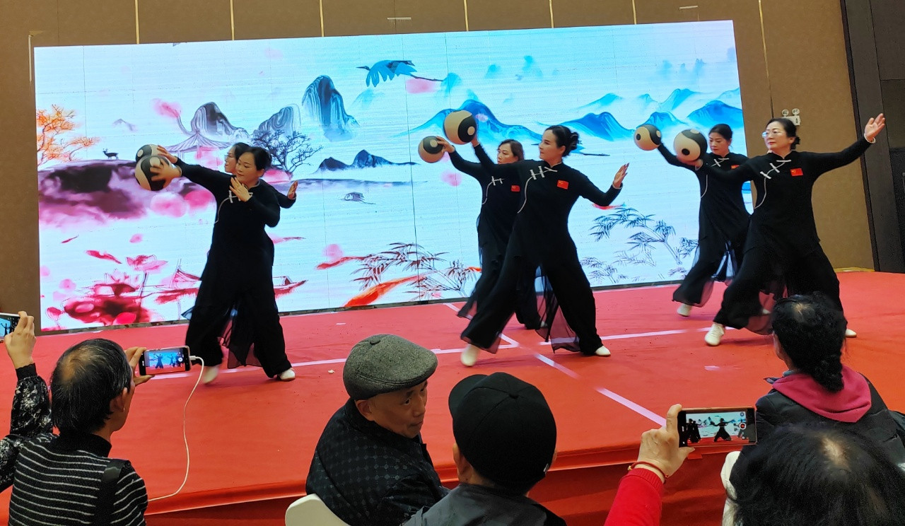 花山区武术协会:王虎等表演的《太极拳、刀》组合。