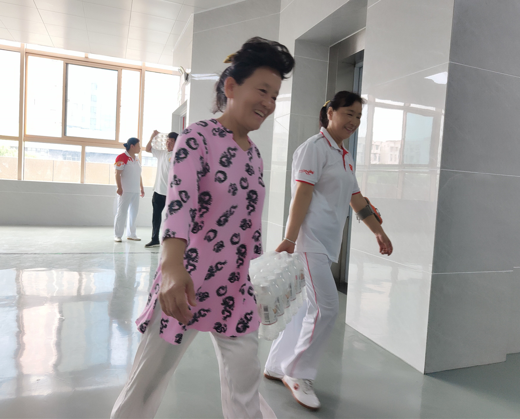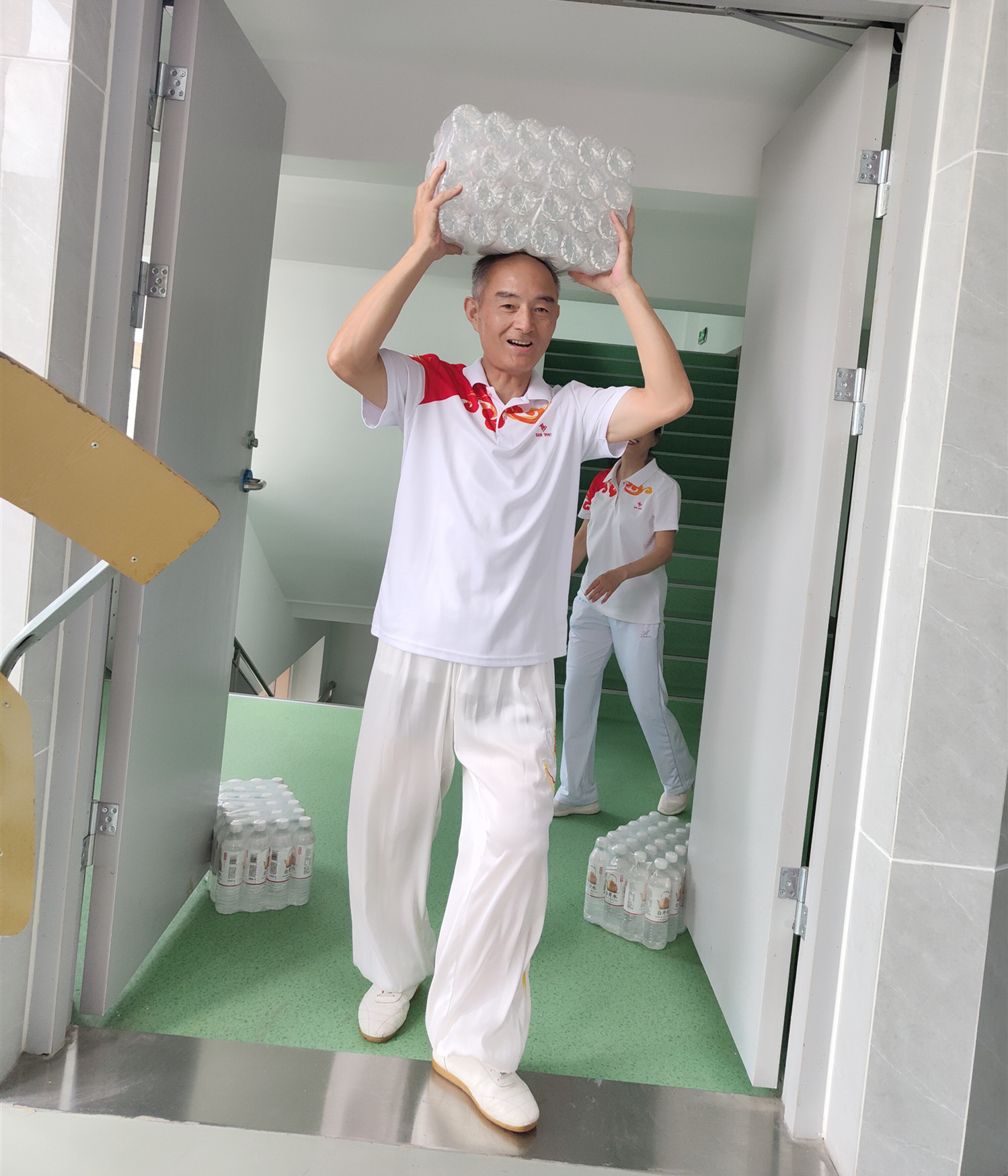 市武术协会副会长、秘书长吴国刚在搬运大会用桌椅