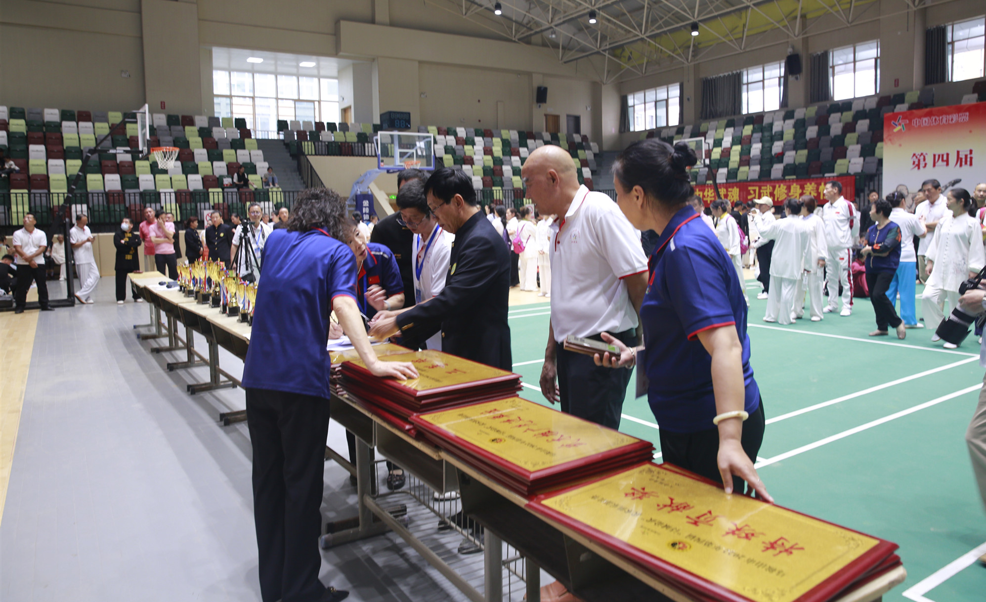 市武术协会副会长吴成英带领后勤部人员有条不紊的分发奖牌和证书