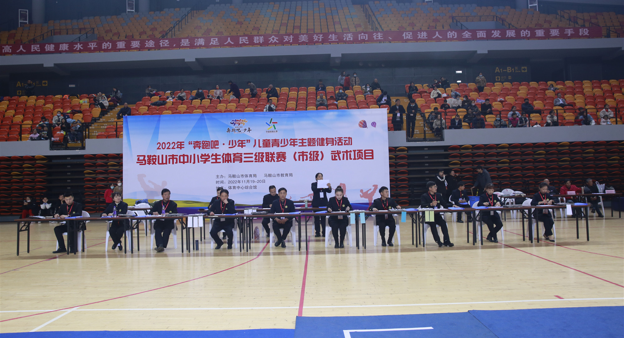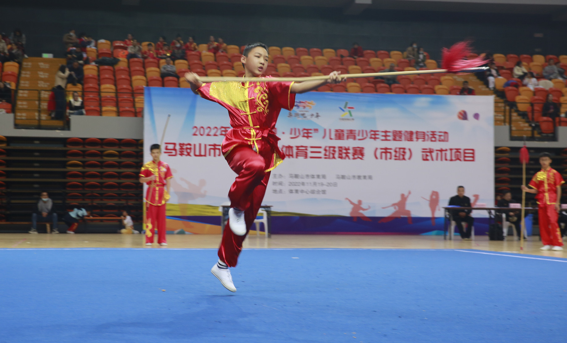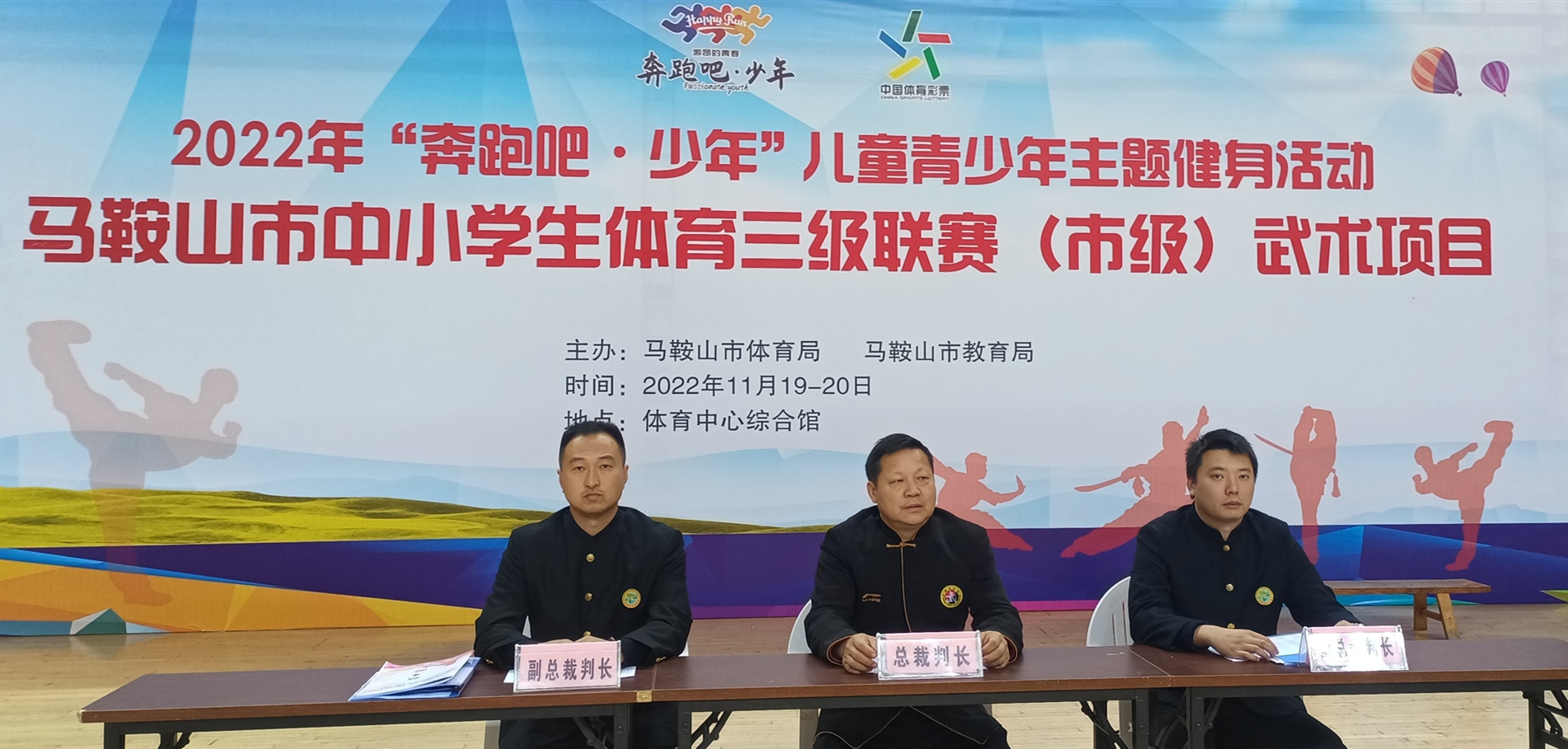 2022年“奔跑吧·少年”儿童青少年主题健身活动、马鞍山市中小学生体育三级联赛(市级)武术项目比赛在市体育中心综合馆落下帷幕。此次活动由马鞍山市体育局、马鞍山市教育局主办。