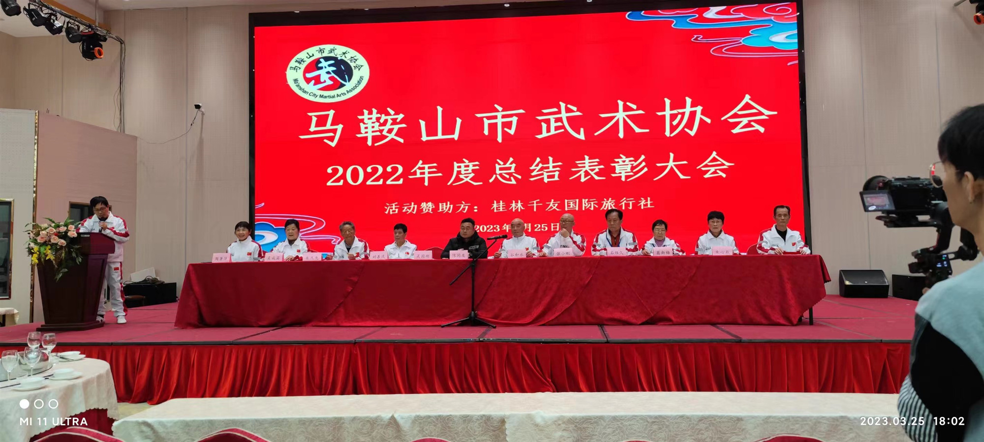马鞍山市武术协会2022年度总结表彰大会于3月25日下午,在广西桂林市金喜多大酒店隆重召开。