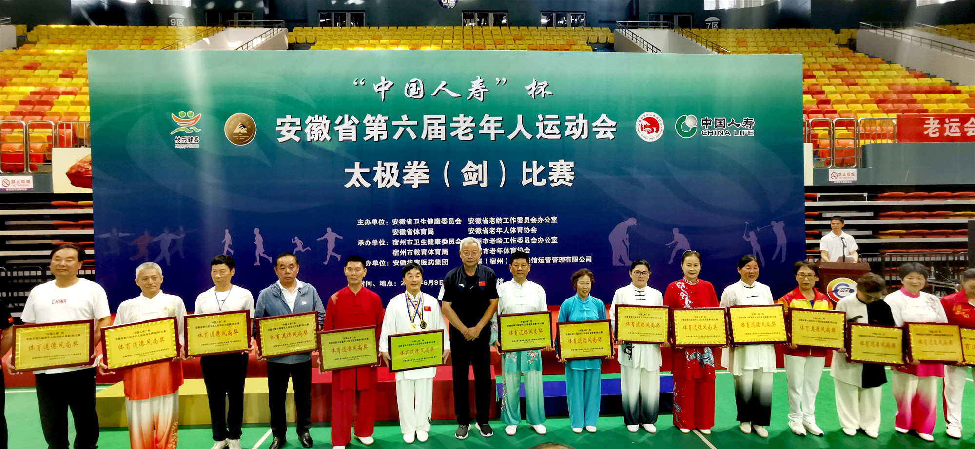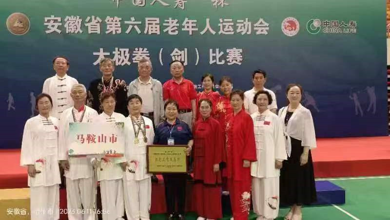 马鞍山市代表队,本着健康第一,友谊第二,比赛第三的省第六届老年人运动会太极拳、(剑)比赛指导思想,开阔视野,交流技艺,相互学习,取长补短。展示了马鞍山人热爱健身运动,追求美好生活的精神风貌。
