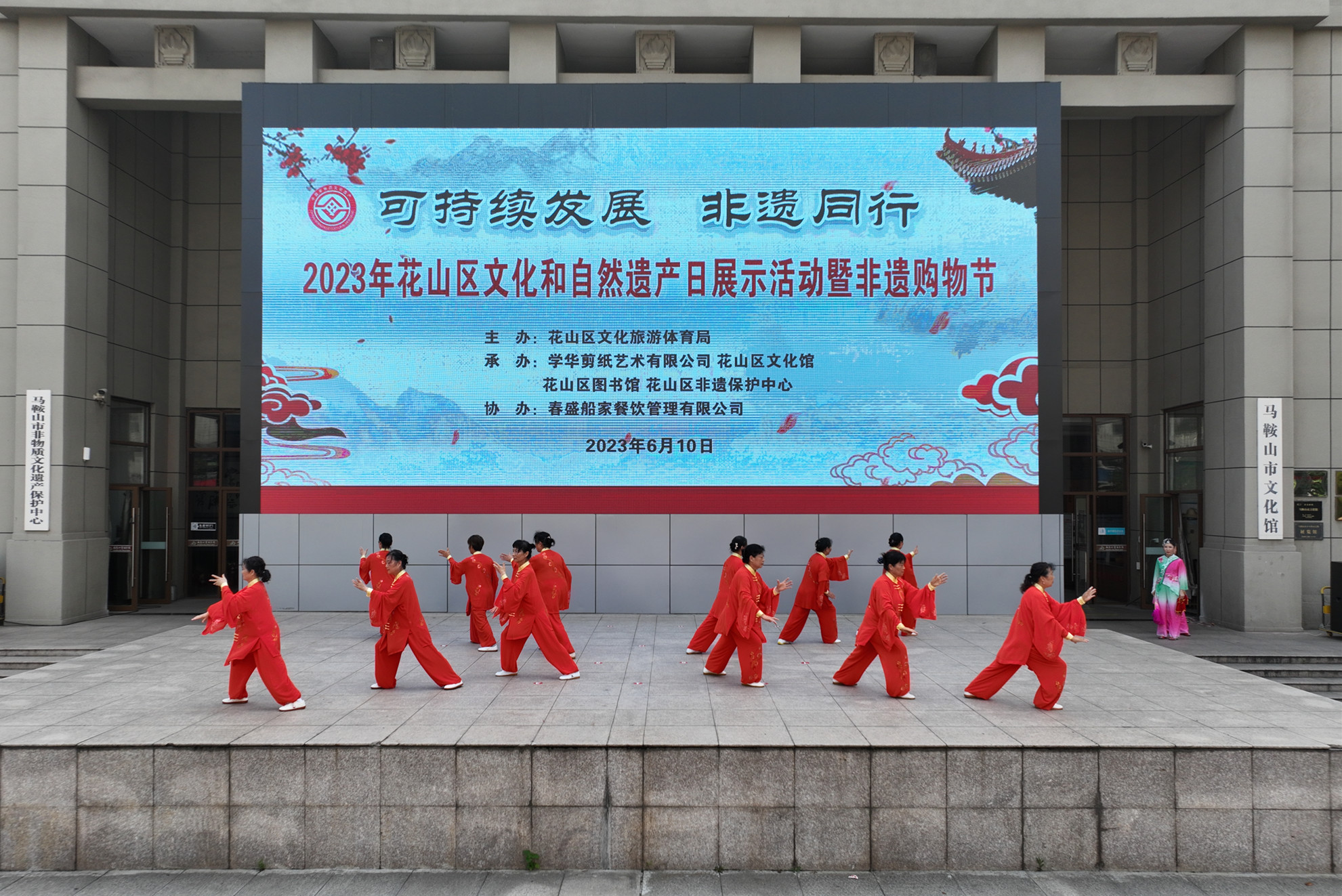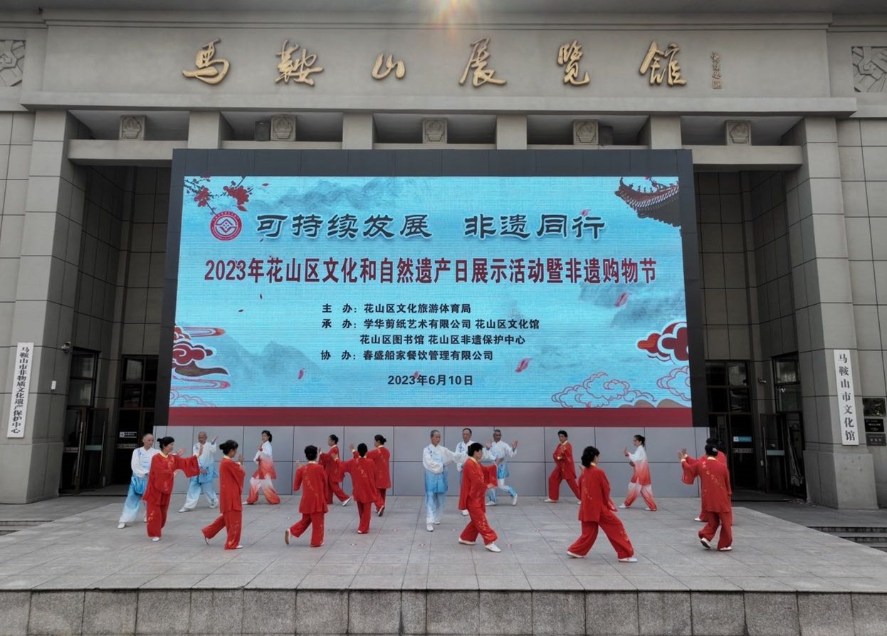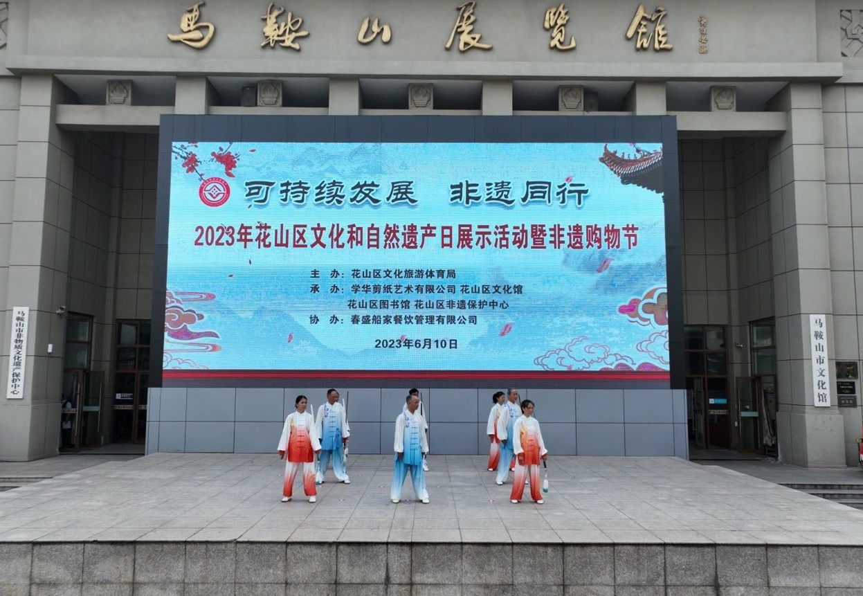 为贯彻落实党的二十大精神,弘扬中华优秀传统文化,进一步提升人民群众对保护传承非物质文化遗产的意识,由花山区文化旅游体育局主办,学华剪纸艺术有限公司、花山区文化馆、花山区图书馆、花山区非遗保护中心承办的“2023年文化和自然遗产日展示活动暨非遗购物节”于 2023年6月10日上午在市文化馆广场举行。