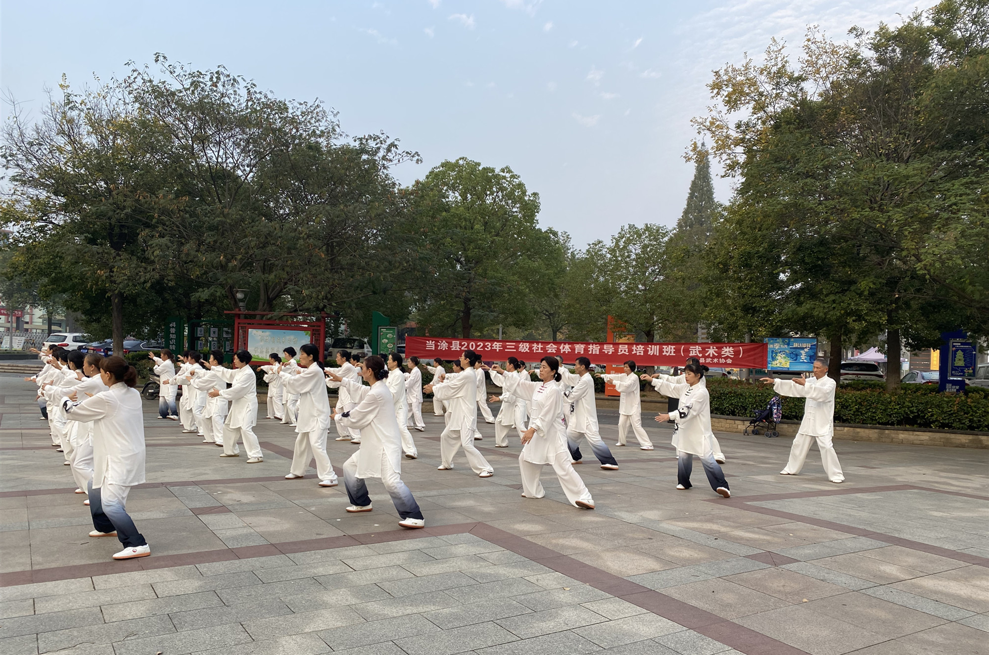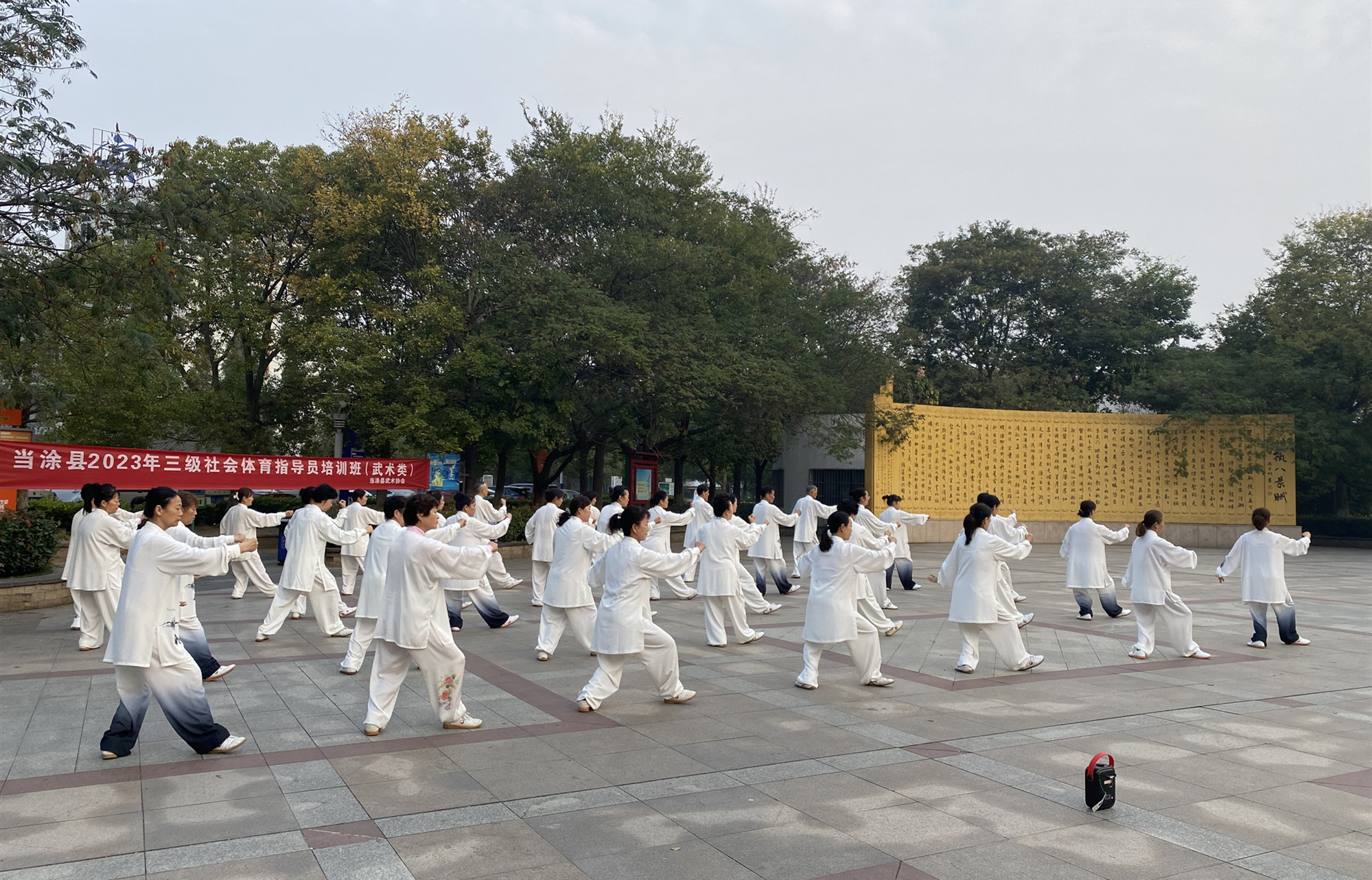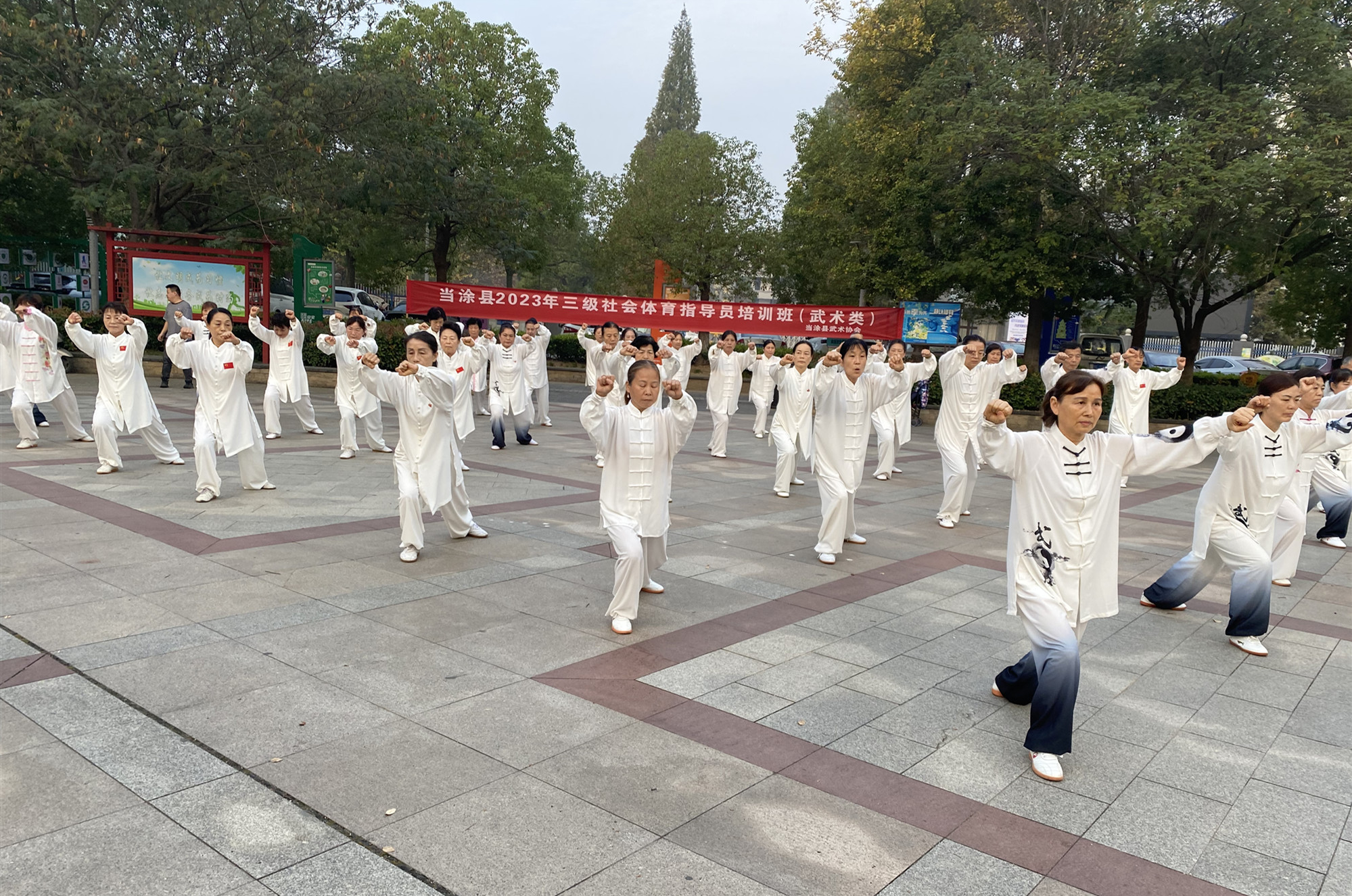 金秋十月,秋高气爽,硕果累累。11月4日,当涂县武术协会在东城水岸广场,举办了“当涂县2023年三级社会体育(武术)指导员培训班”。来自全县各个俱乐部70余名会员参加了培训。学员们通过培训拳技逐渐娴熟,都能较好的担负起指导员职责,将为我县太极拳发展起到很好的传帮带作用。此次培训达到了预期效果,取得圆满成功!