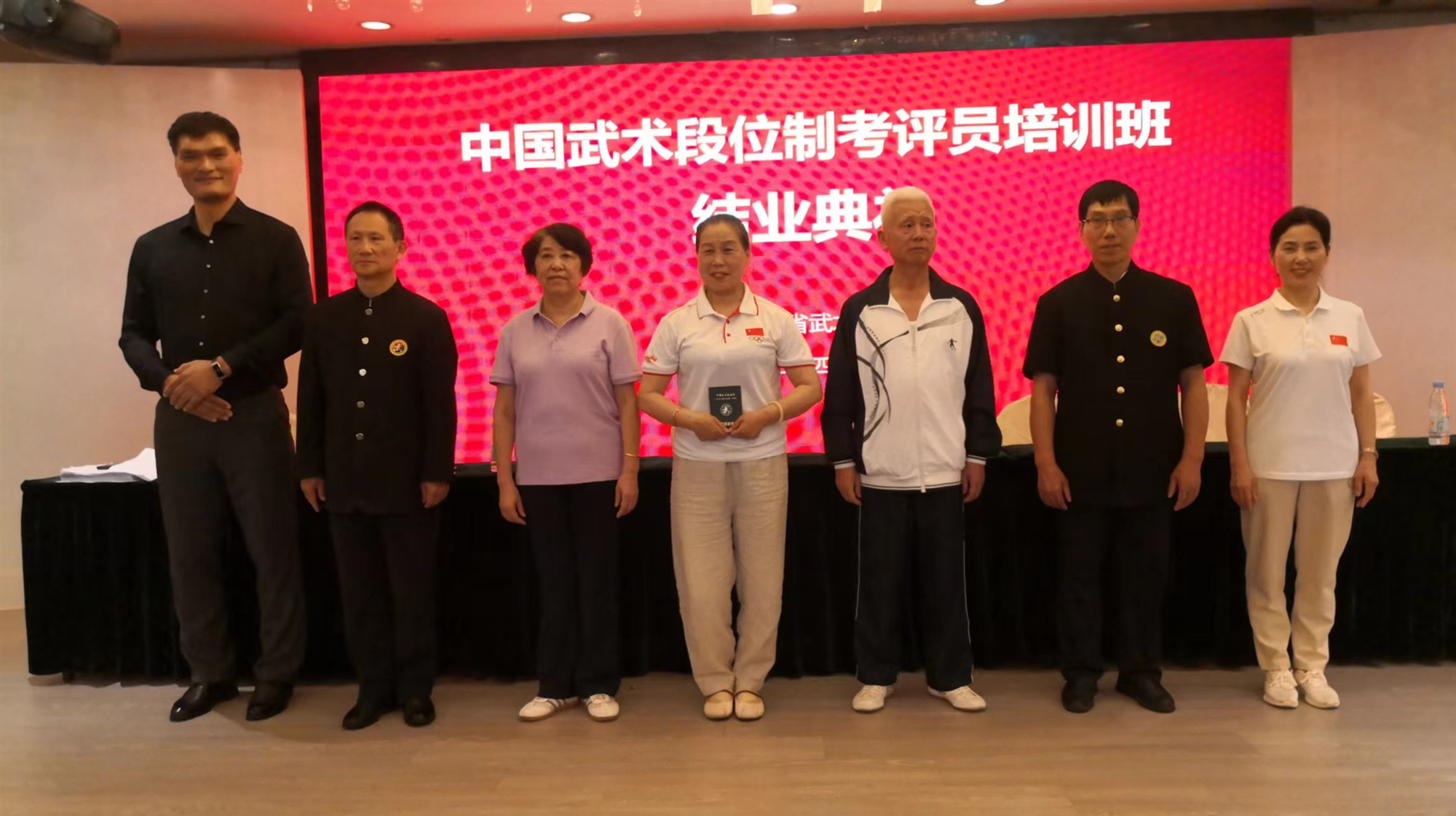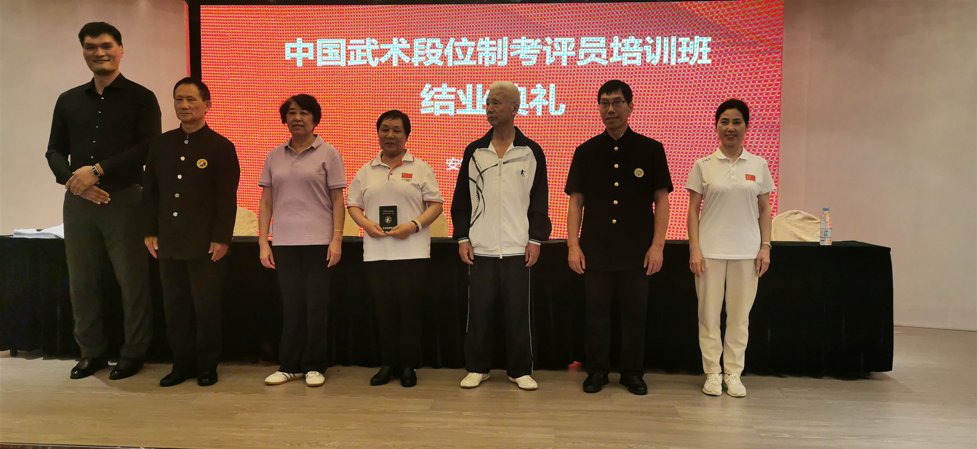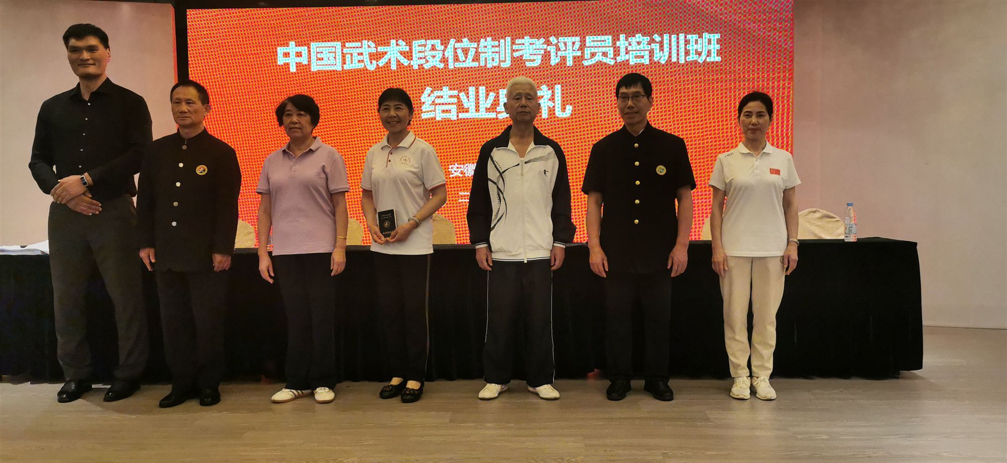 最后经过严格的考核和评审,来自我们马鞍山市武术协会的葛新梅,周著萍,刘玉梅,张秀文,彭晓梅,陶文松,柯爱娥七位老师都顺利通过了资格认证。