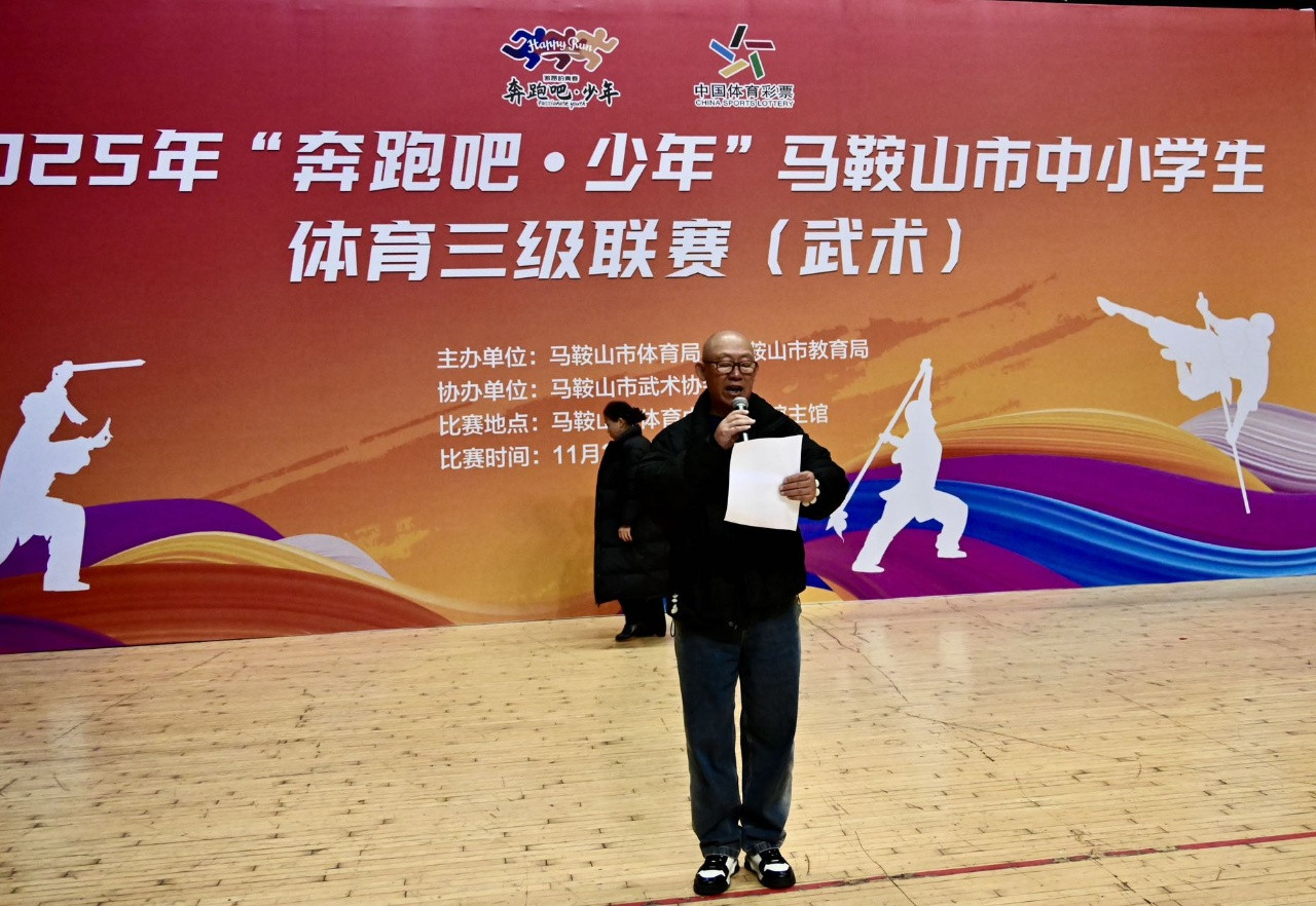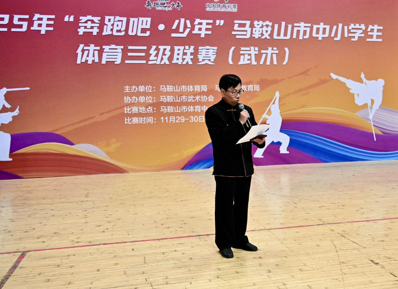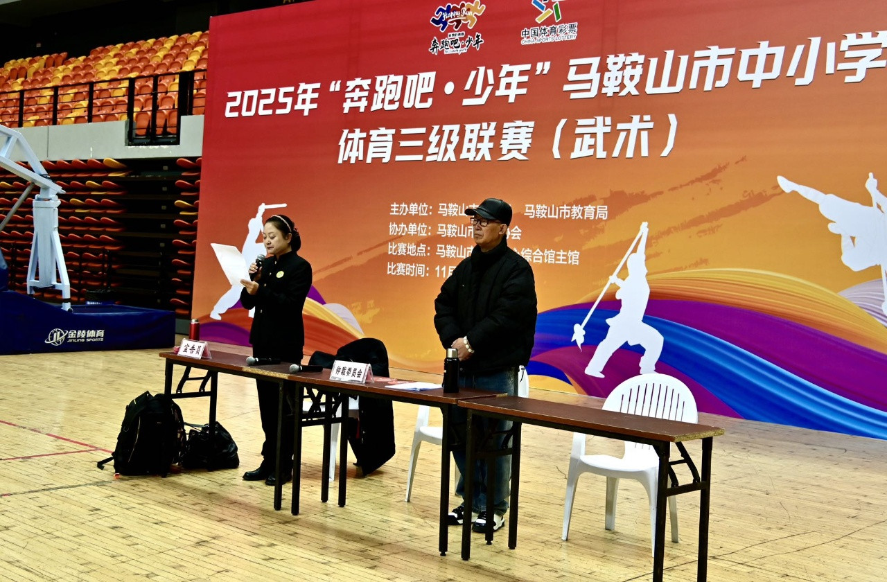 2025年“奔跑吧·少年”马鞍山市中小学生体育三级联赛武术(套路)比赛于11月29日上午8时30分在奥体中心综合馆主馆正式开赛!