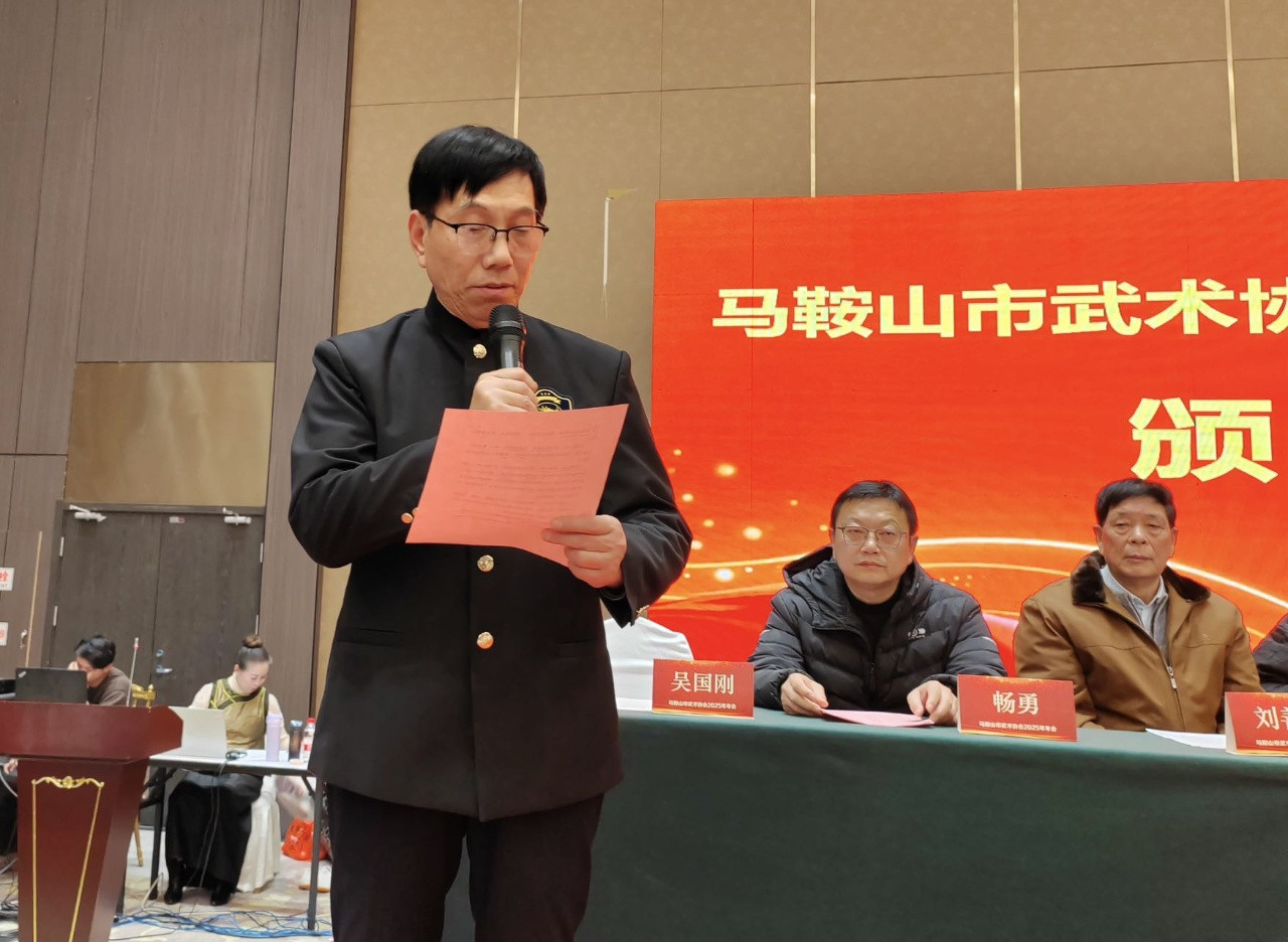 马鞍山市武术协会会长谷和永作了题为《2025年度工作总结和今年重点工作的报告》。