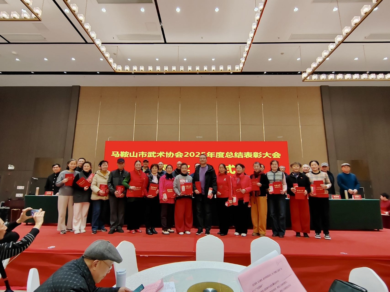 2025年元月18日下午:2:30分,在雄壮的国歌声中,马鞍山市武术协会在万达美华酒店隆重举办2025年度工作总结暨表彰大会。